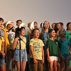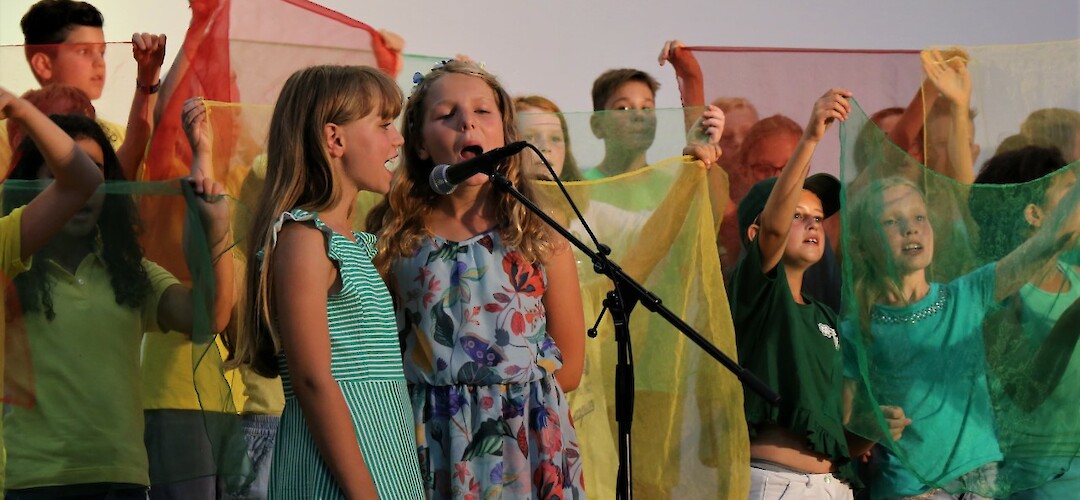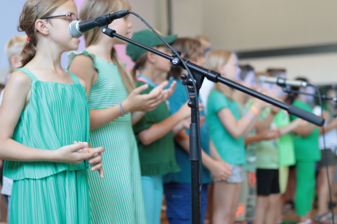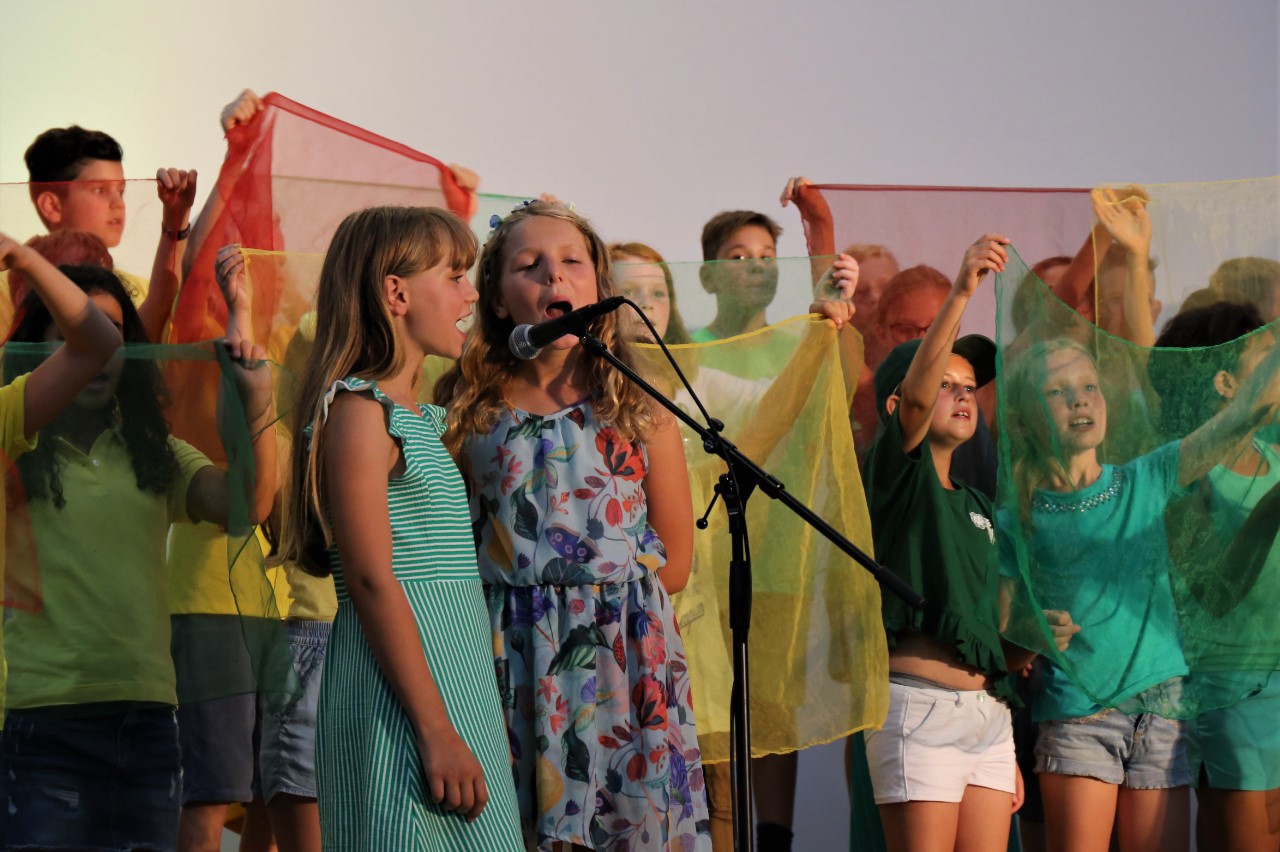 Bei heißen Temperaturen feierte die FES-Grundschule am Mittwoch, 25.07. in der Sporthalle der FES ihr jährliches Kulturfest. In einem bunten Programm gaben die Viertklässler der FES Grundschule noch mal so richtig Vollgas und präsentierten als Hauptbeitrag das Musical von Tobias Rienth „Vierfarbenland“. Unter der gemeinsamen Regie von Dorothea Schneider, Tabea Römmich und Maike Bassler und in bunten Kostümen, passend zu ihrem jeweiligen „Land“ waren die Kinder gelb, rot, blau und grün. Nur eines – ach du Schreck! – war ganz bunt! In lustiger Weise und mit vielfältiger Musik erzählten die Kinder die Geschichte von „Erbs“, der im grünen Land geboren war, aber einfach nicht grün bleiben wollte, sondern das Bunt-Sein und Auffallen suchte. Sehr zum Verdruss der Eltern und Wächter des Landes. Sogar eine Namensänderung gab es, er nannte sich dann „Grips“, weil er „so viel Grips hatte, Fragen zu stellen“. Auf kindliche Weise wurde so das Thema verarbeitet, wie man mit Menschen, die „anders“ sind, umgeht. Nathanael Pantli, der Leiter der Grundschule, ergänzte später in seiner Rede, dass die Kinder von Gott so schön unterschiedlich bunt gemacht worden seien und dass sie alle gut sind. Er gab ihnen auch noch mal mit, wie wichtig es ist, die Achtung voreinander, aber auch vor sich selbst nicht zu verlieren. „Achtet euch selbst! Achtet die anderen!“, umschrieb er die goldene Regel aus der Bibel für die Kinder. („Liebe dich selbst! Liebe deinen Mitmenschen!“). Weitere Höhepunkte des Programmes waren ein zwei Lieder der Drittklässler, eines verbunden mit einem Segen für die weitergehenden Viertklässler. Außerdem wurden die langjährigen Lehrer Michel Randriaminahy und Edna Pfleiderer geehrt und in den Ruhestand entlassen. Mit einer emotionalen Rede des Schulleiters, herzlichen Umarmungen von Seiten der Schüler und Dank von der Elternschaft bedankte man sich für ihren langjährigen, einzigartigen und wertvollen Beitrag zur FES-Familie. Ebenfalls verabschiedet wurden Maike Bassler, die ein Sabbatjahr einlegt, Jannya Jasten, die zur CSH wechselt, Anke Schlotterbeck, die das Team der Grundschule gemeinsam verstärken wird, Matthias Keinert, der zukünftig an der FESM in Müllheim unterrichten wird und Tabea Renz, die an die CSS weiterzieht.