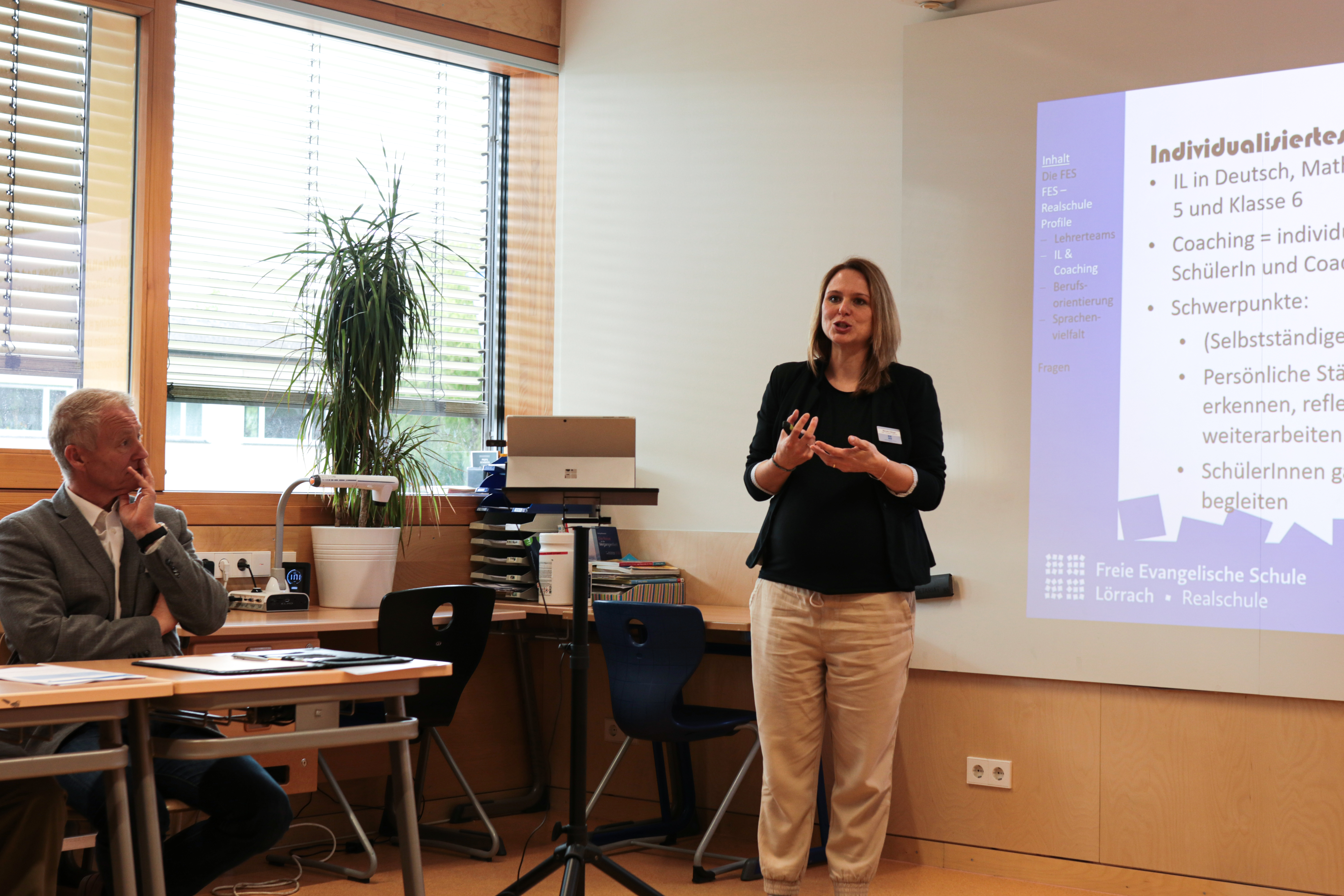 Ein weiterer wichtiger Baustein ist eine intensive Zusammenarbeit mit der Elternschaft. Und so waren auch die beiden Elternvertreterinnen der Realschule Kerstin Trefzer und Beate Böhringer eingeladen und über die Elternarbeit zu berichten. „Wir erleben hier, dass wir gern gesehen werden und unsere Sichtweise für die Schule wichtig ist“, sagte RS-Elternbeiratsleiterin Trefzer. Das funktioniere aber nur mit guter Kommunikation zwischen allen Beteiligten. Kommunikationsleiterin Claudia Schäfer erläuterte im Anschluss, mit welchen Tools und Regeln an der FES zwischen Elternhaus und Schule, aber auch Eltern untereinander kommuniziert werde.