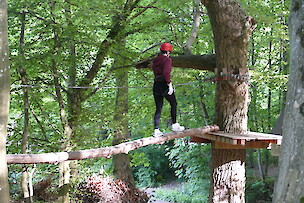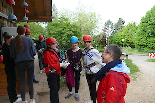 Danach ging es erst richtig los. Als erstes wurde jedem Schüler ein Sicherungsgurt angelegt, damit wir gleich nach der Einweisung mit dem Klettern starten konnten. Einige SchülerInnen mussten sich anfangs ihrer Angst stellen. Es gab verschiedene Schwierigkeitsgrade. Einer davon war der Partnerparcour, welcher sehr anspruchsvoll war. Der Seilrutschenparcour hat uns als Klasse am besten gefallen.