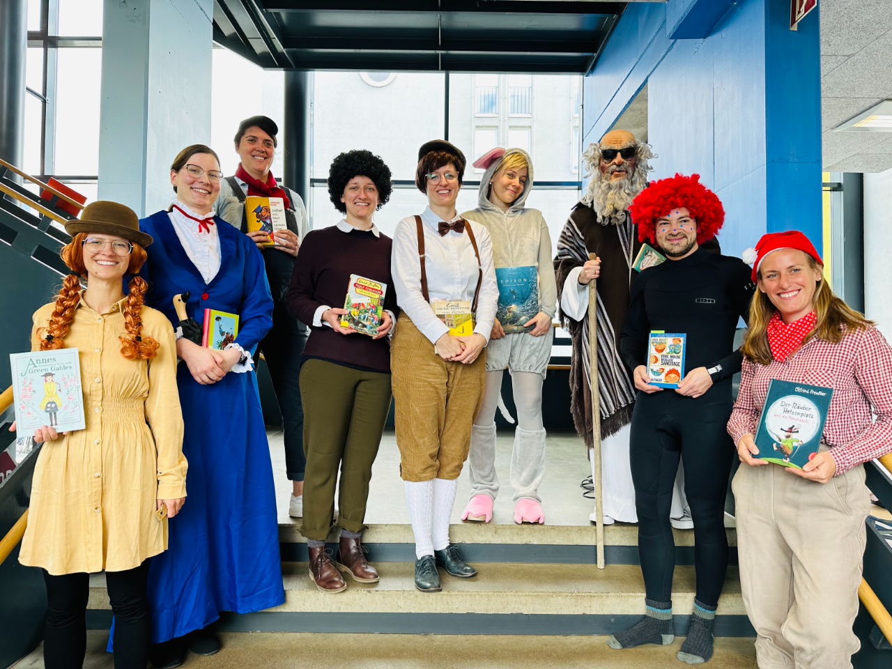 Die Kinder durften an diesem Tag kostümiert mit ihrem Lieblingsbuchcharakter und ihrem Lieblingsbuch in die Schule kommen und sich im Erzählkreis präsentieren. Nach der großen Pause dann gab es eine Lesestunde der besonderen Art. Die Hauptfiguren aus verschiedenen Kinderbüchern erwachten zum Leben und lasen höchstpersönlich den Schülern aus ihren Abenteuern vor. Die Schülerinnen und Schüler durften selbst aussuchen, in welche Welt sie eintauchen wollen und dürfen eine ganze Schulstunde lang auf den Flügeln der Fantasie davonfliegen. Eine bunte Mischung war da in den verschiedenen Klassenzimmern zu finden. Neben Sams, Jim Knopf, waren die Fünf Freunde, Mary Poppins, Anne of Green Gables, Edison, der Räuber Hotzenplotz, Emil und die Detektive und Noah dabei. Die Kinder stauten, wie ihre Lehrerinnen und Lehrer sich verwandelt hatten. Gespannt lauschten sie während des Vorlesens den Erzählungen. Und die Lehrerinnen und Lehrer hatten sichtlich Spaß am Verkleiden. So wurde Literatur auf lustige Art lebendig und die Lesestunde ein ganz besonderes Erlebnis für die Kinder.