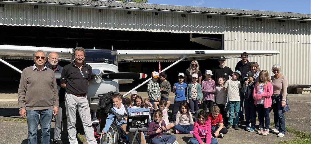 Für die Zweitklässler der GrundschuleGemeinsam begann dieser Ausflug schon mit einem Highlight: Kaum angekommen am Flugplatz in Rheinfelden Herten, startete direkt vor ihren Augen ein Ultraleichtflugzeug in den Himmel.